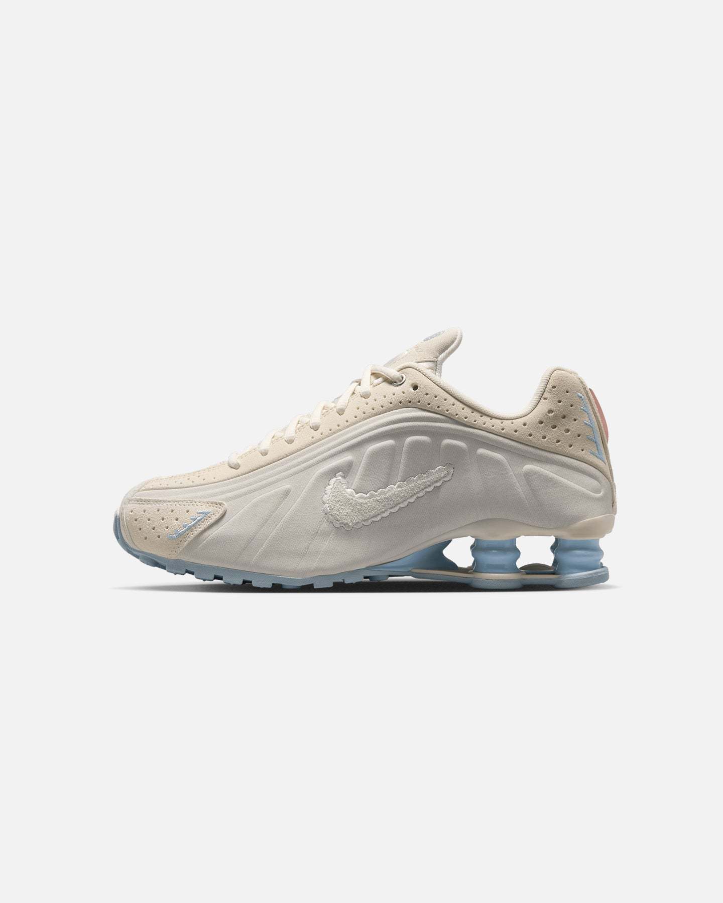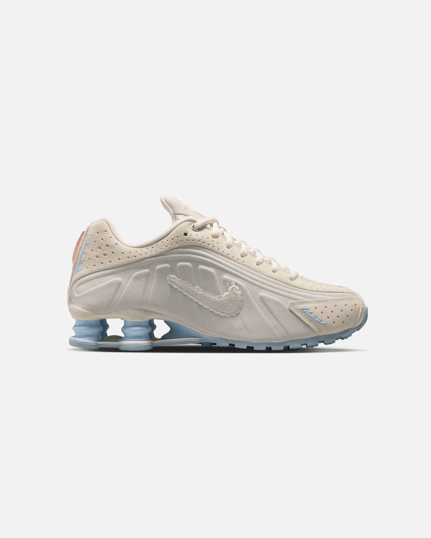 A recrafted version of the 2001 icon, the Nike Shox R4 replicates the original with its synthetic and textile upper, design lines and laser perforations. Nike Shox cushioning distributes weight to maximize comfort and provide a performance-inspired look. Cop yours today at Culture Kings.- Responsive cushioning- Circular waffle outsole- Synthetic uppers- Laser perforations- Upper is a near-exact replica of the original 2001 Nike Shox- Padded collar- Lace-up closure- Low-cut silhouette- Colour: Pale Ivory- Style: IH3572-110