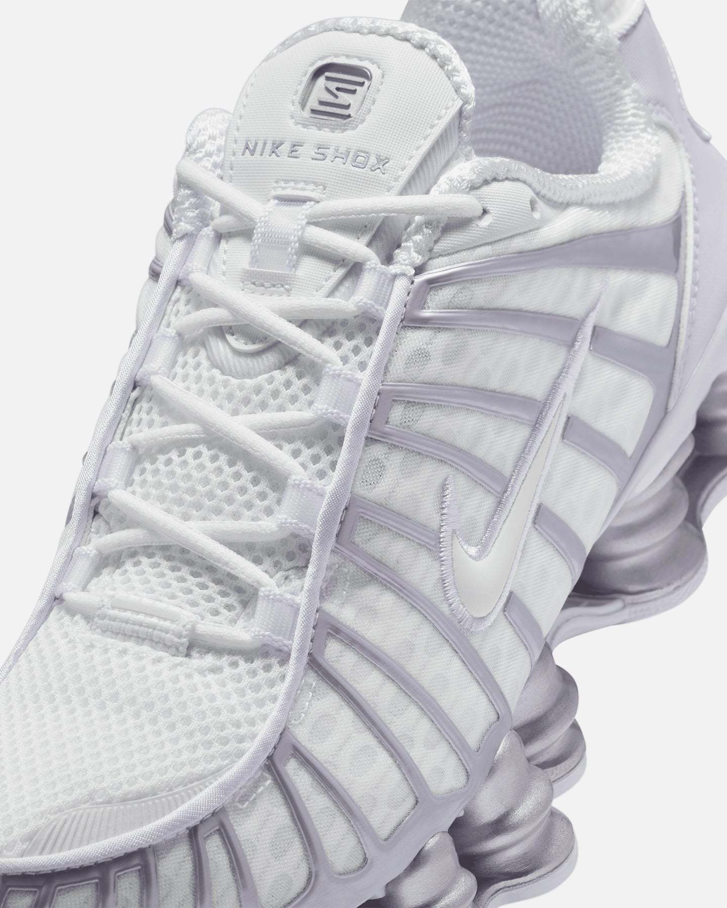 The Nike Shox TL takes mechanical cushioning to the next level. A recrafted version of the 2003 icon, it features breathable mesh in the upper and full-length Nike Shox technology for optimal impact absorption and a bold look on the streets. Get your hands on a pair today at Culture Kings.- Reflective details- Breathable mesh upper- Synthetic and textile upper- Rubber outsole- Moulded overlays throughout midfoot- Design is a near-exact replica of the 2003 Nike Shox TL- TPU plate in heel- Colour: Summit White- Style: AR3566-104