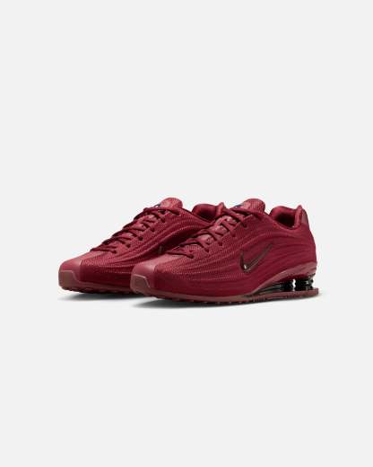 Your favorite retro runner has reached its next evolution. The Shox Z has a slim, low-profile shape and a new take on the iconic column design. Cop yours today at Culture Kings.- Textile upper- Synthetic leather accents- Nike Shox cushioning- Waffle outsole- Foam midsole- Shiny finishes- Low-cut silhouette- Lace-up closure- Colour: Dark Team Red- Style: HQ7540-600