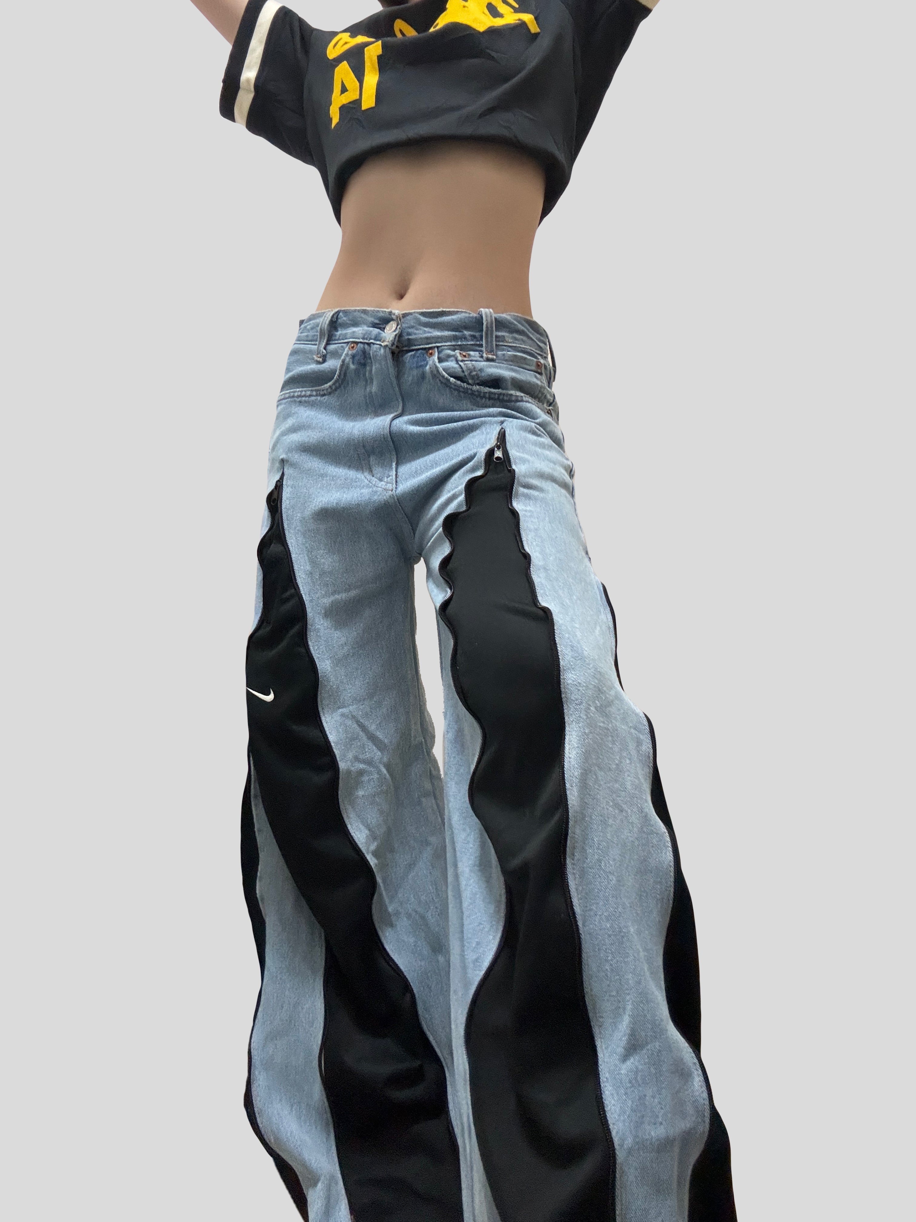 🔹Length: 41.5”Remade from sport brands sweatpants and Levi’s jeans👖