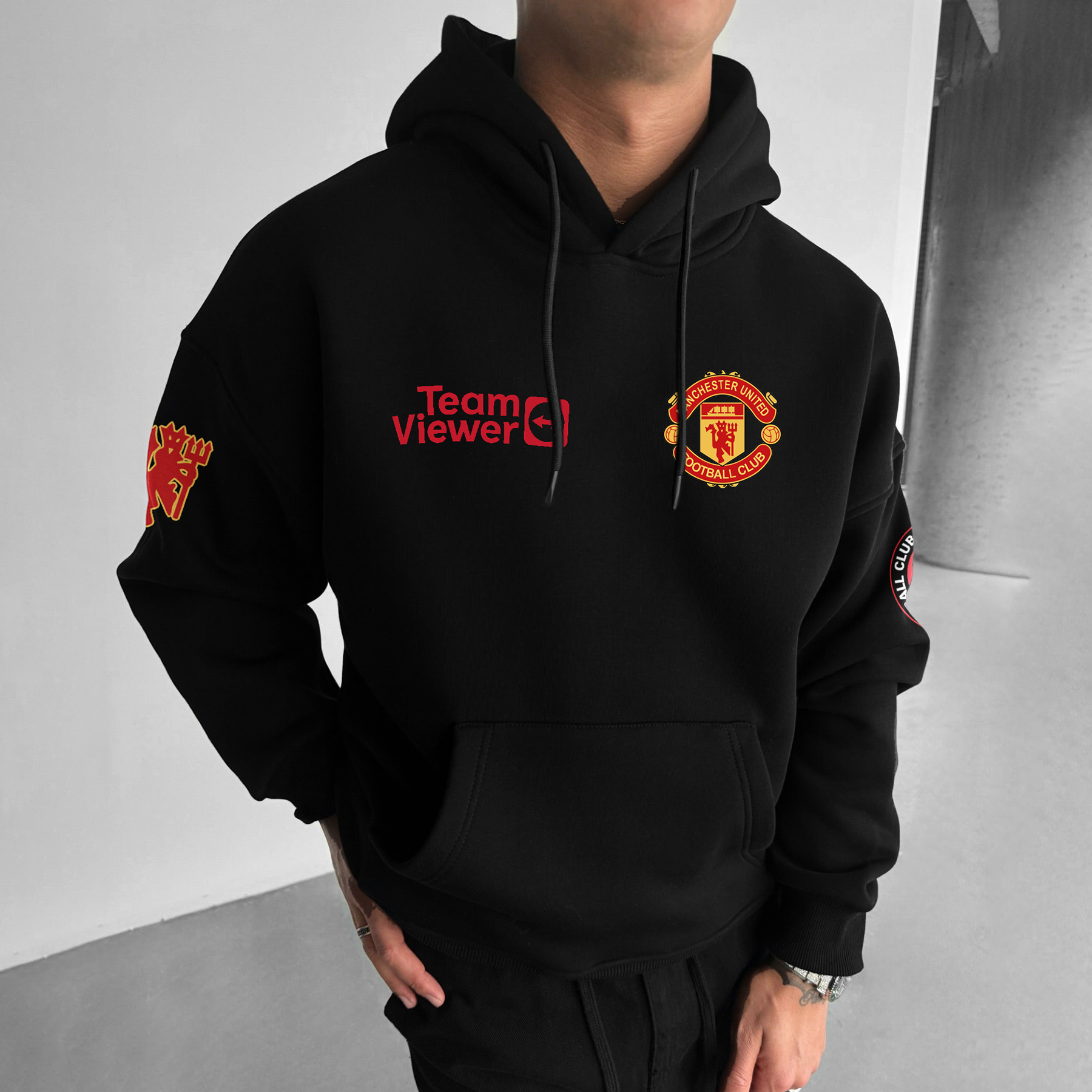 Oversized Manchester United Print Hoodie Football Print Hoodie