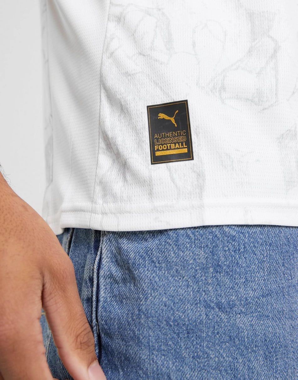 Inspired by City’s 70s heritage with a modern edge, this shirt features a bold black-red sash across a clean white base. The hand-painted design and subtle fan graphics celebrate the passion of City supporters. Finished with PUMA’s dryCELL tech for lightweight comfort on and off the pitch.