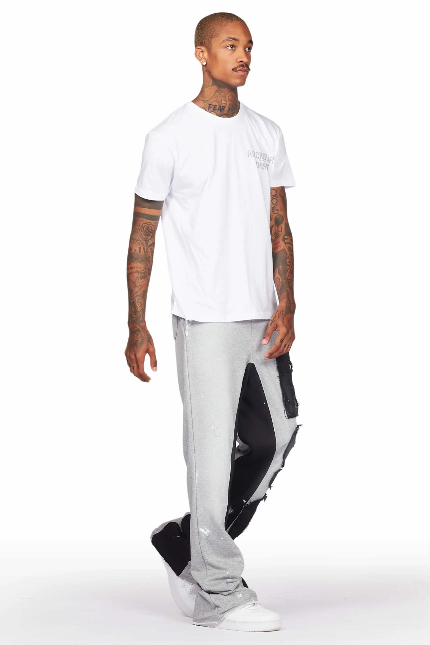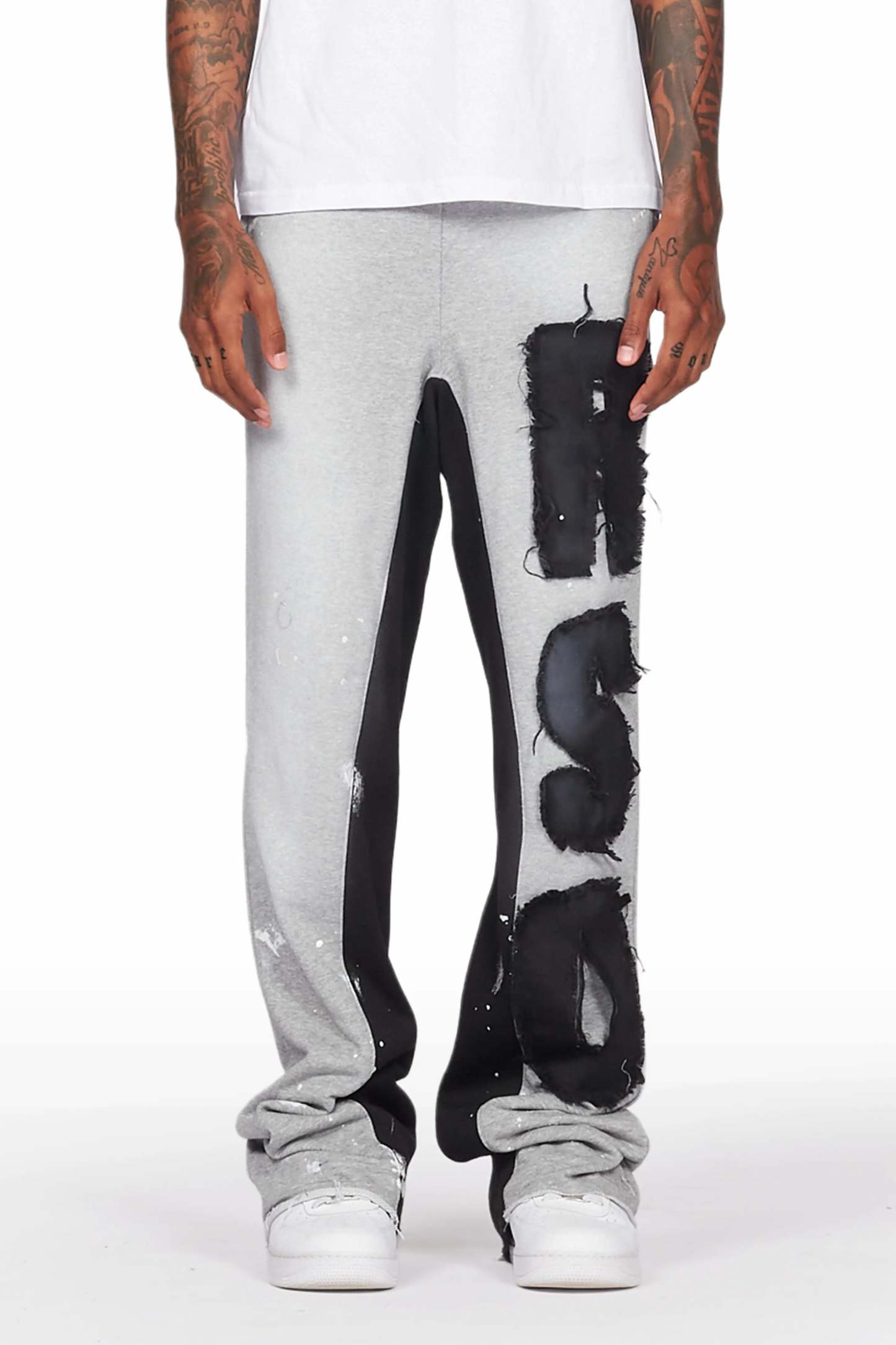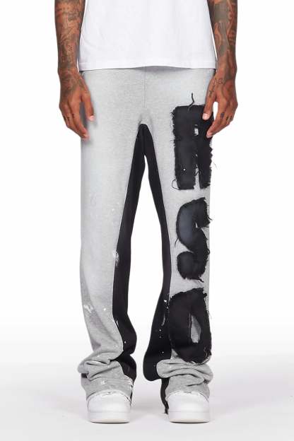 Acotas Grey Patchwork Stacked Baggy Flare Pants