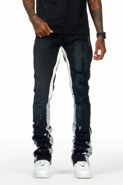 A pair of urban streetwear super stacked track pants for men in black. Designed with ultra soft organic cotton and extra long legs for a must-cop athleisure style.