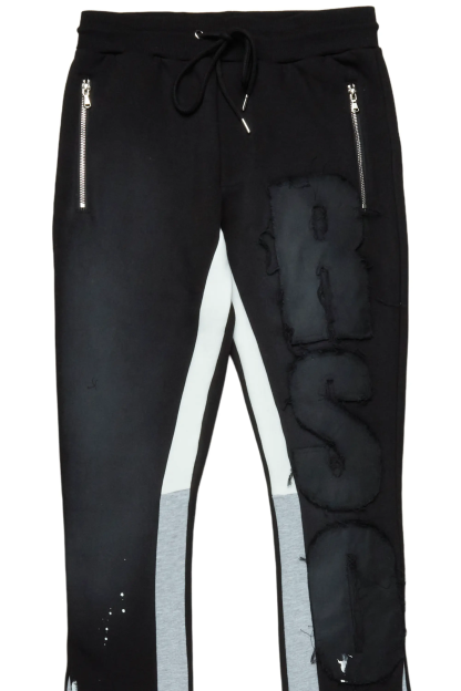 Acotas Black/Black Patchwork Super Stacked Flare Pants