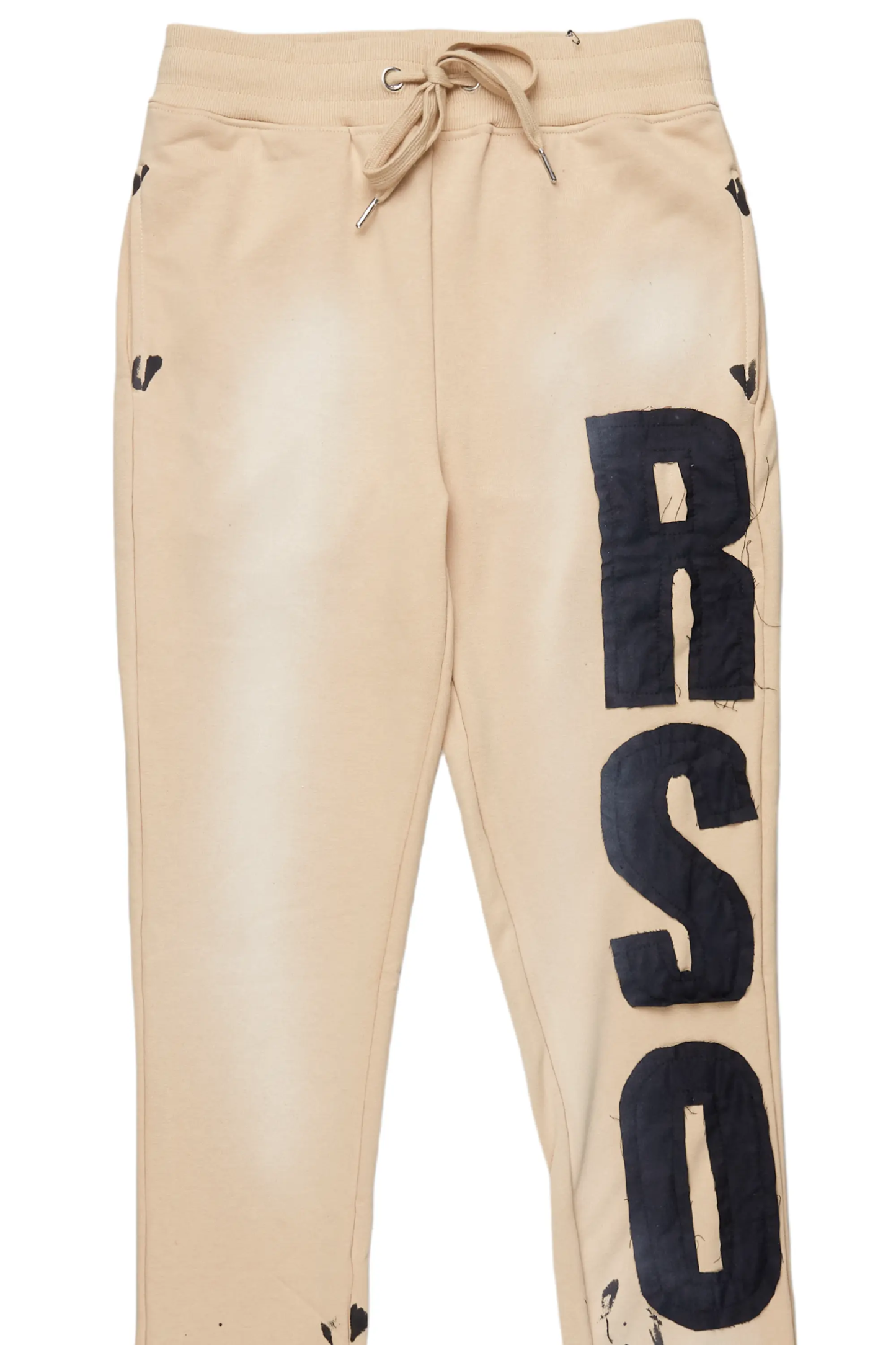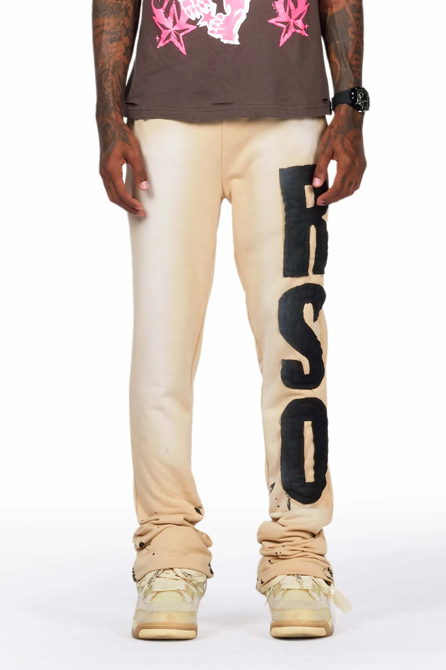 A pair of urban streetwear stacked track pants for men in khaki. Designed with ultra soft organic cotton and extra long legs for a must-cop athleisure style.