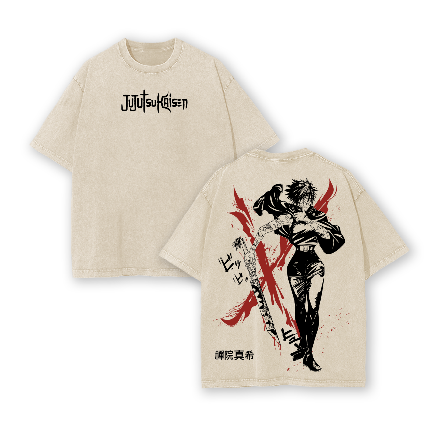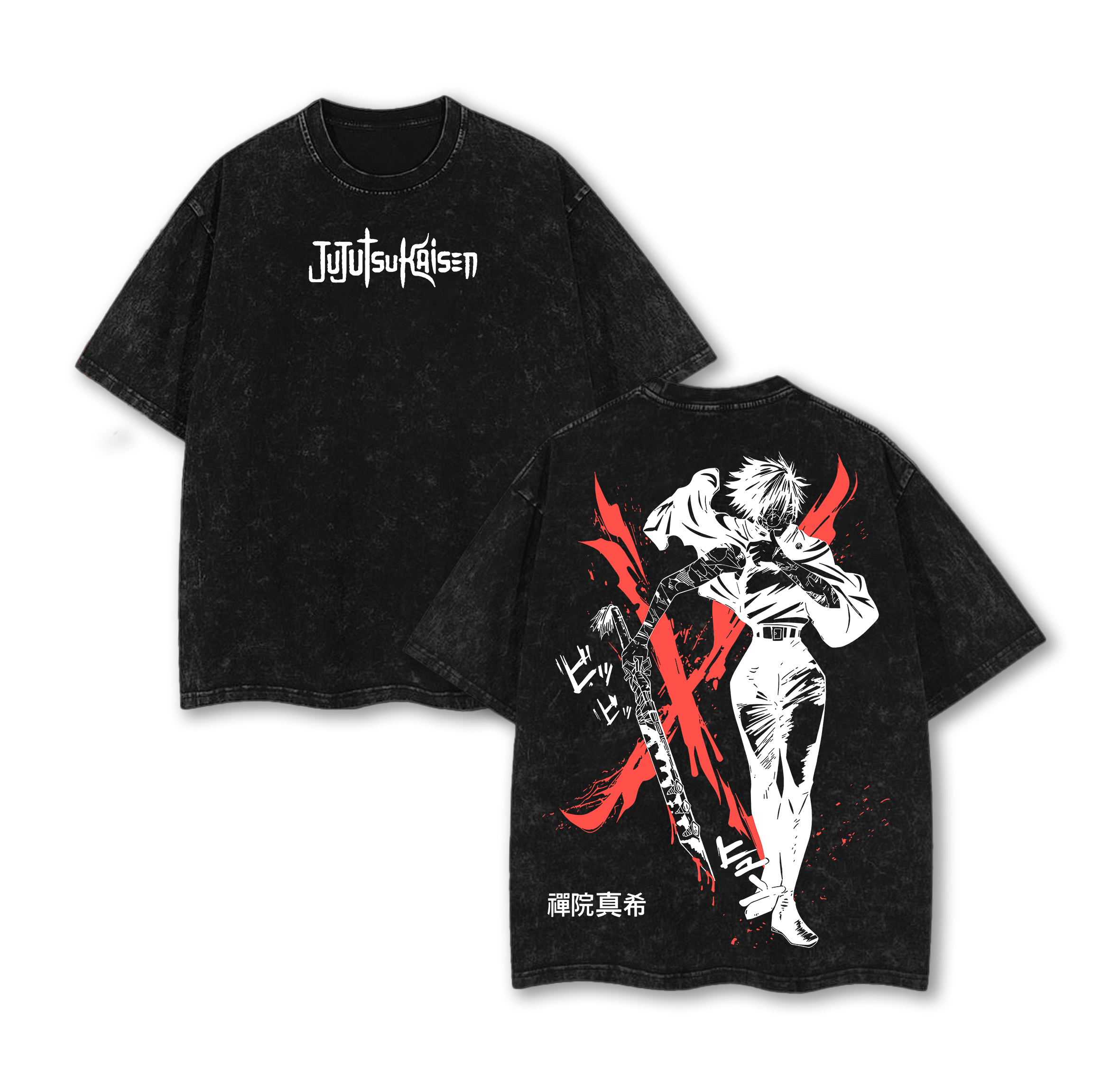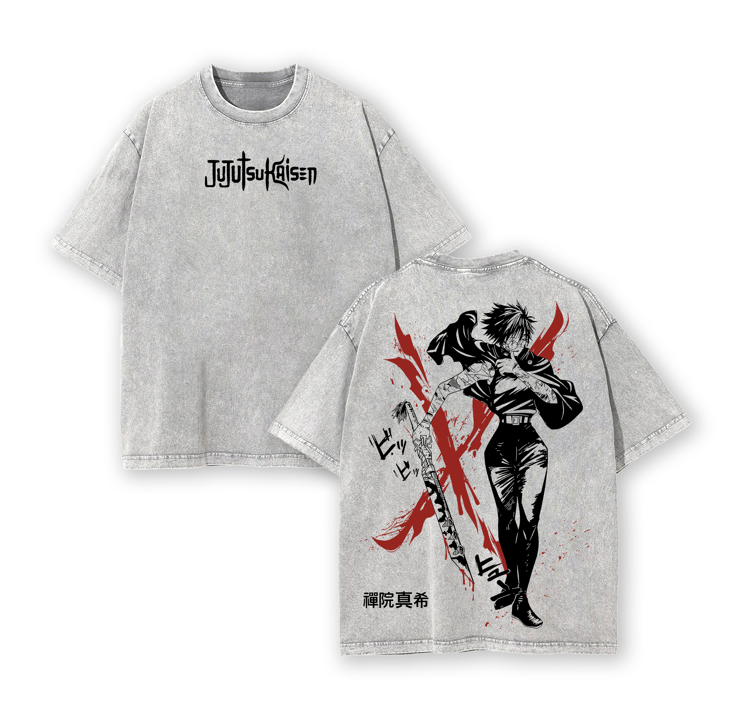Maki Zenin Tee Washed – Jujutsu Kaisen Execution Culling Game Arc Vintage Oversized Heavy Cotton Double Printed Anime Manga T-Shirt, Retro Unisex Streetwear Graphic Top, The Demon of Zenin Clan Edition