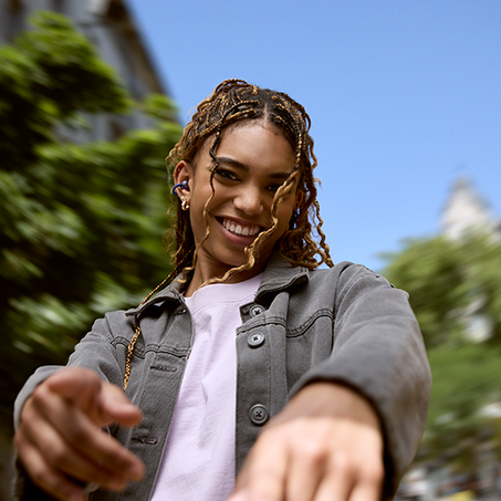 Use the JBL Headphones app to choose between using one or both of the beamforming mics in each earbud. (It'll depend on how you wear them on your ear: experiment and see what works for you.) In either case, the JBL Soundgear Clips boast an AI-trained algorithm that reduces environmental noise so you'll always sound clear, even if you're talking outside on a breezy day.