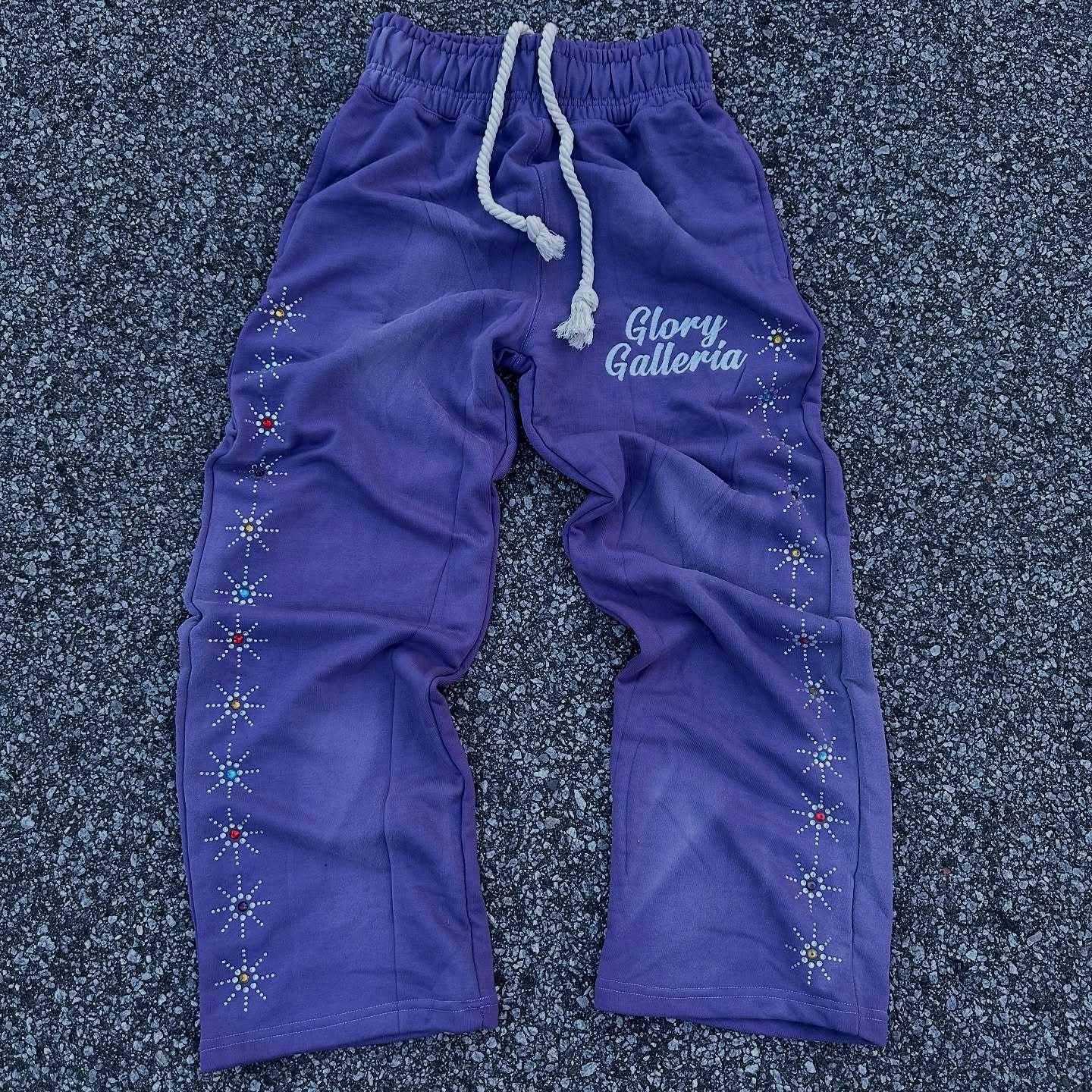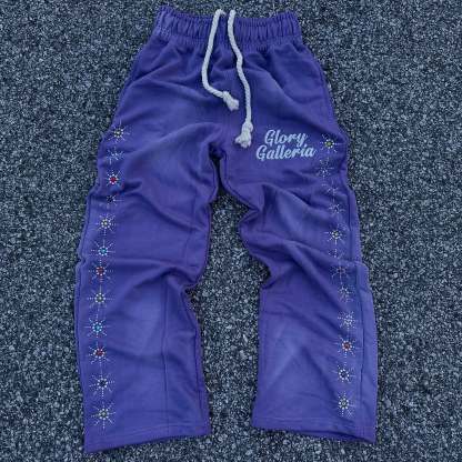 Street style rhinestone casual wide-leg pants