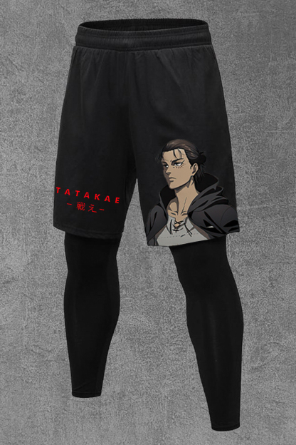 Tatakae Anime Printed Men's All-In-One Fitness Leggings