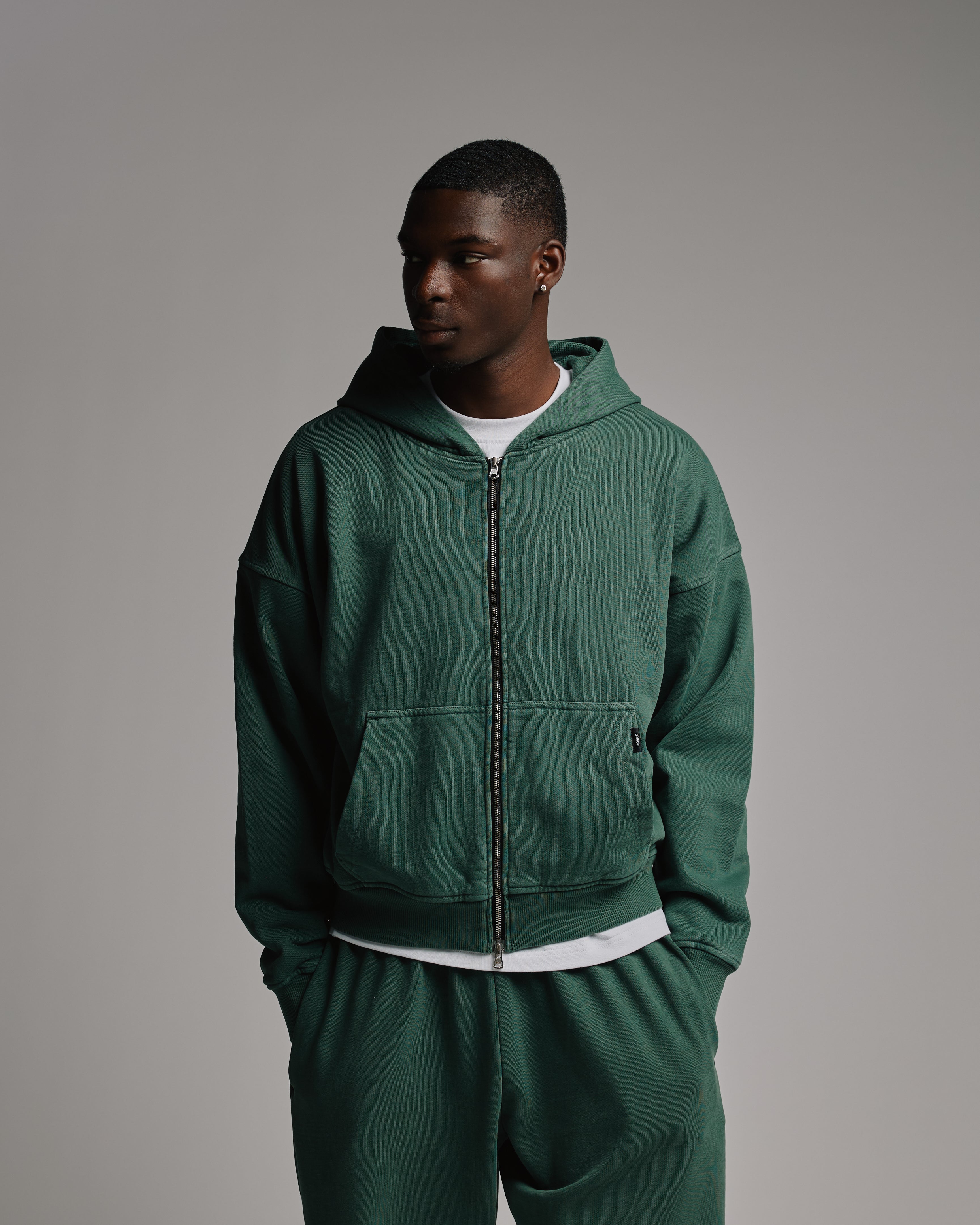 Thermal Lined Zip Hoodie - Vintage Green