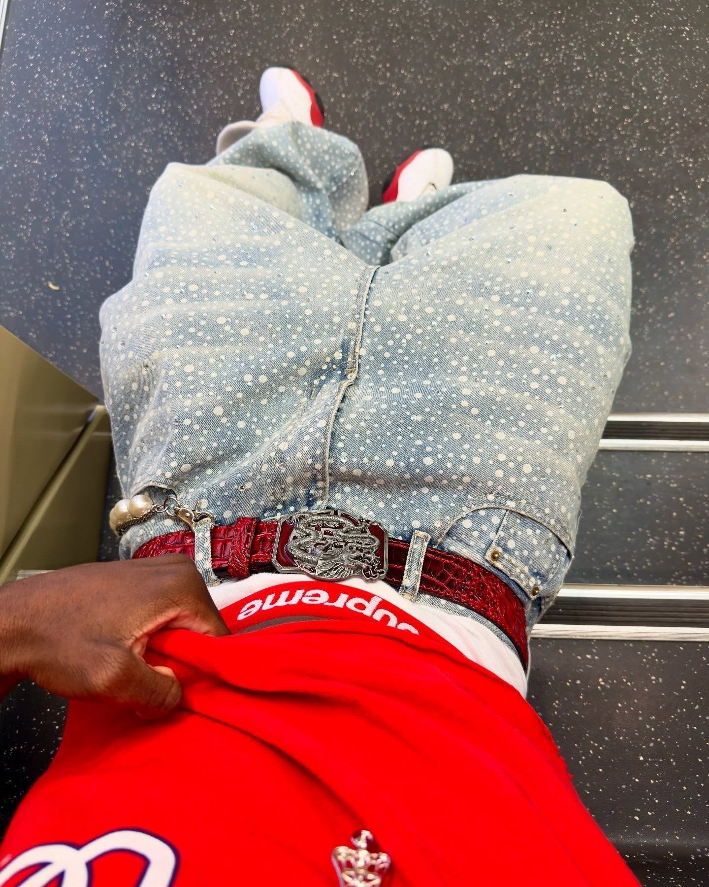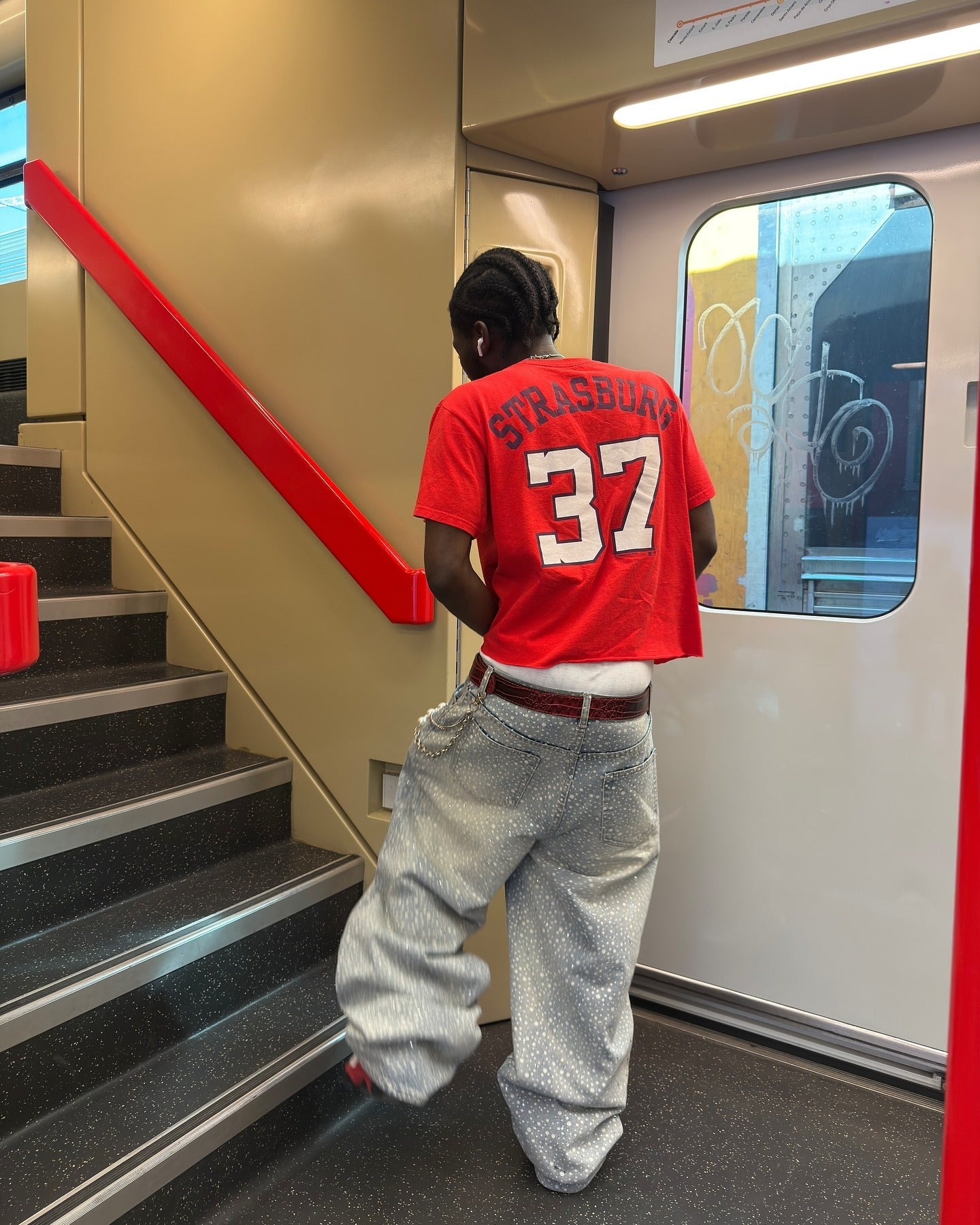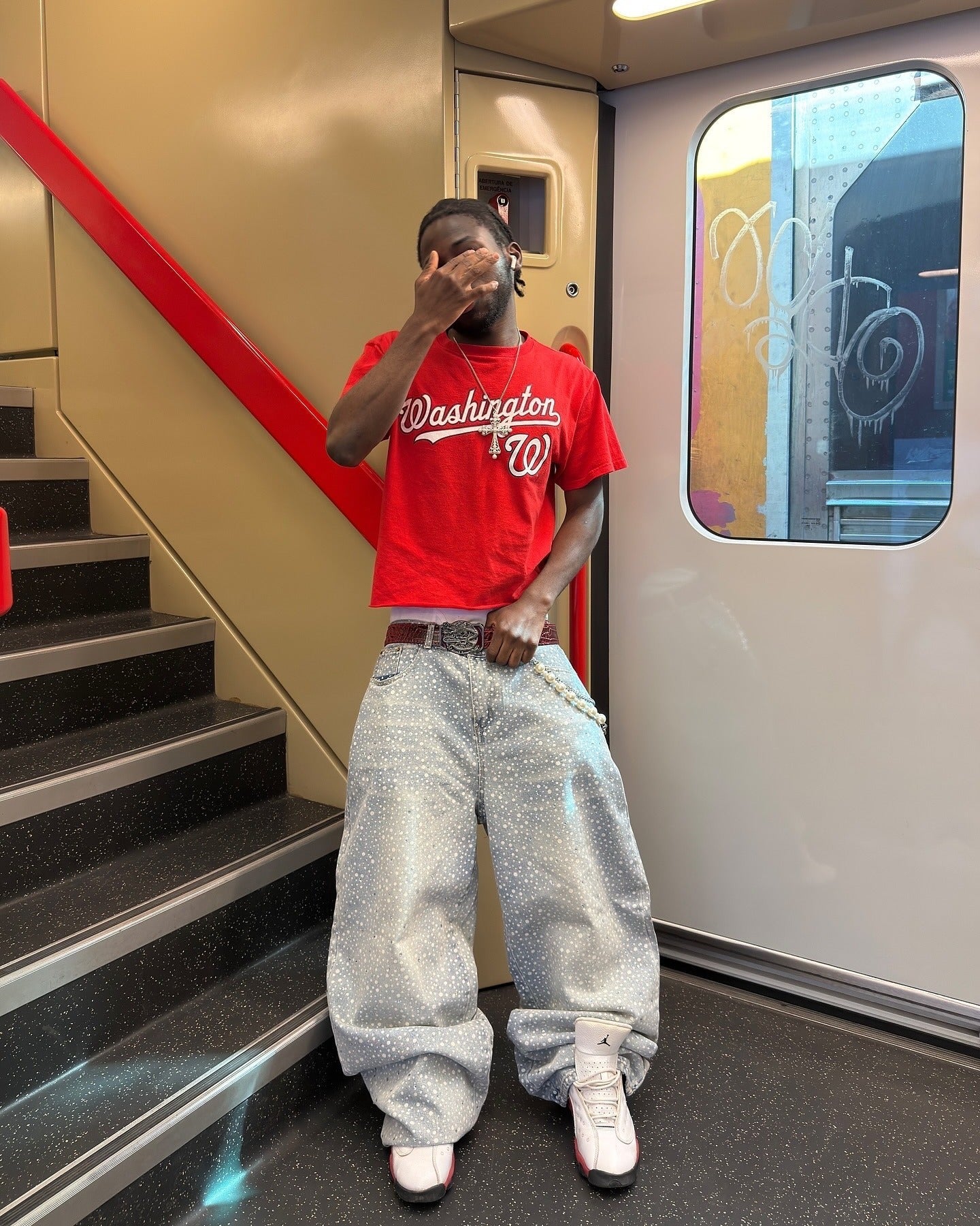 Thesupermade Ink Splashed Hotfix Rhinestone Baggy Jeans - 2306