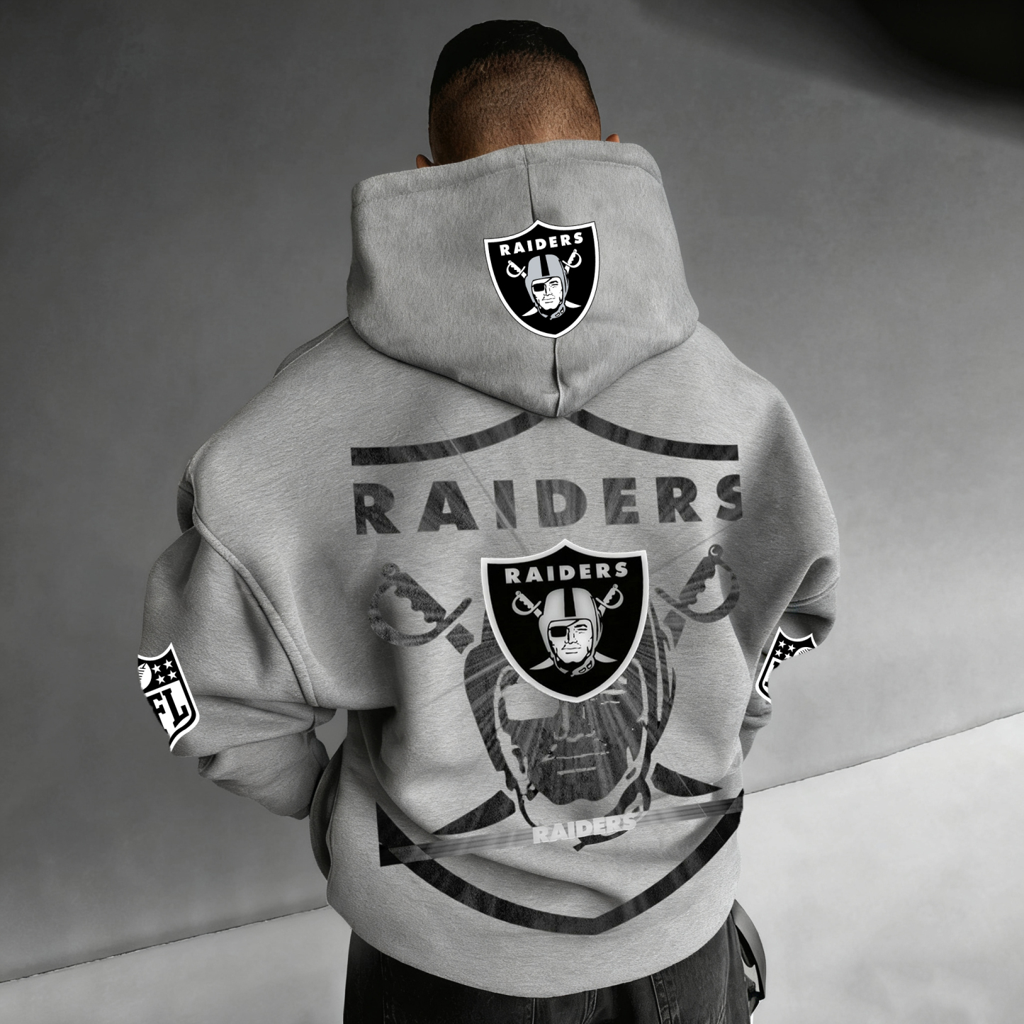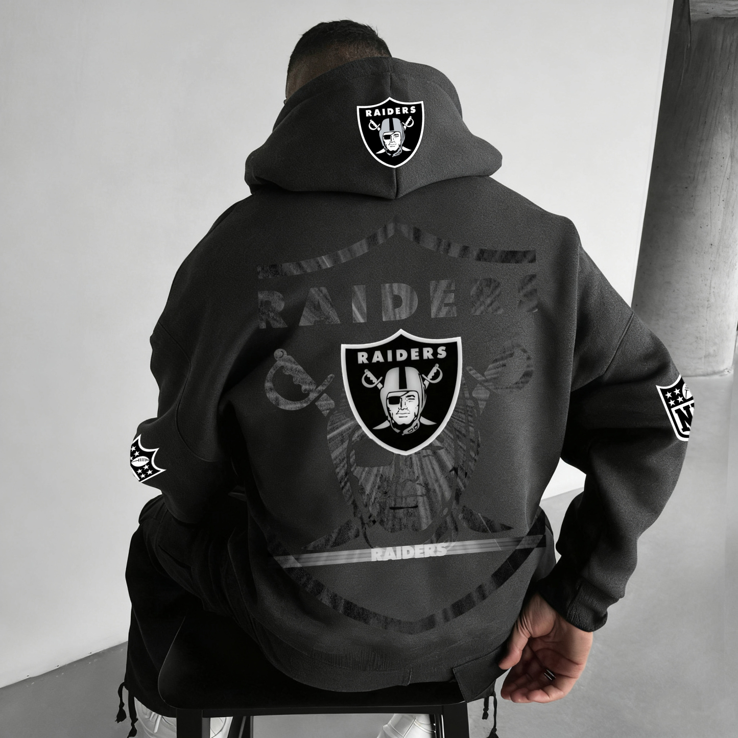 • Design Elements: Chest logo patch, sleeve lettering, hooded design