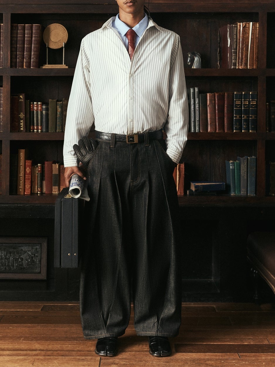 WHITE/BLACK PINSTRIPE BUTTON UP SHIRT
