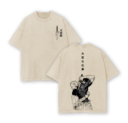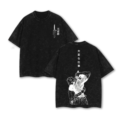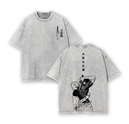 Fushiguro Toji Tee - Jujutsu Kaisen Anime Double Printed Washed Tee Unisex Oversize Anime Manga Acid Washed Lightweight Cotton T-Shirt
