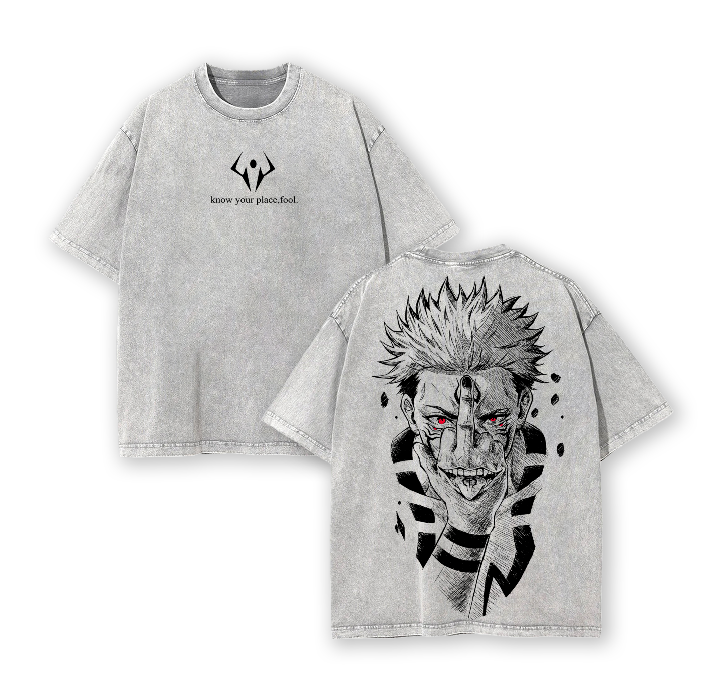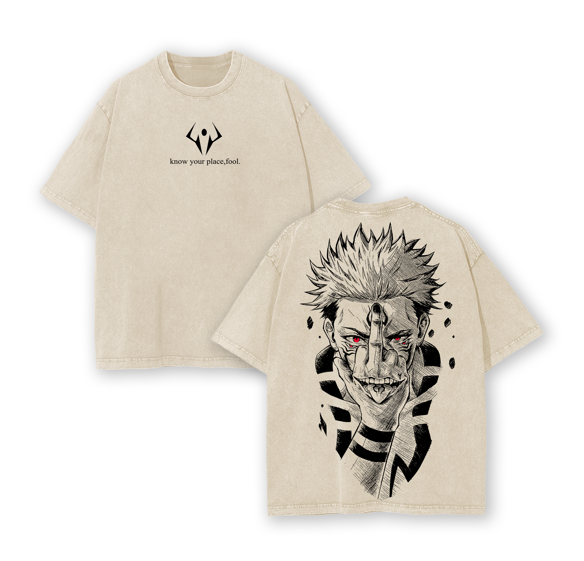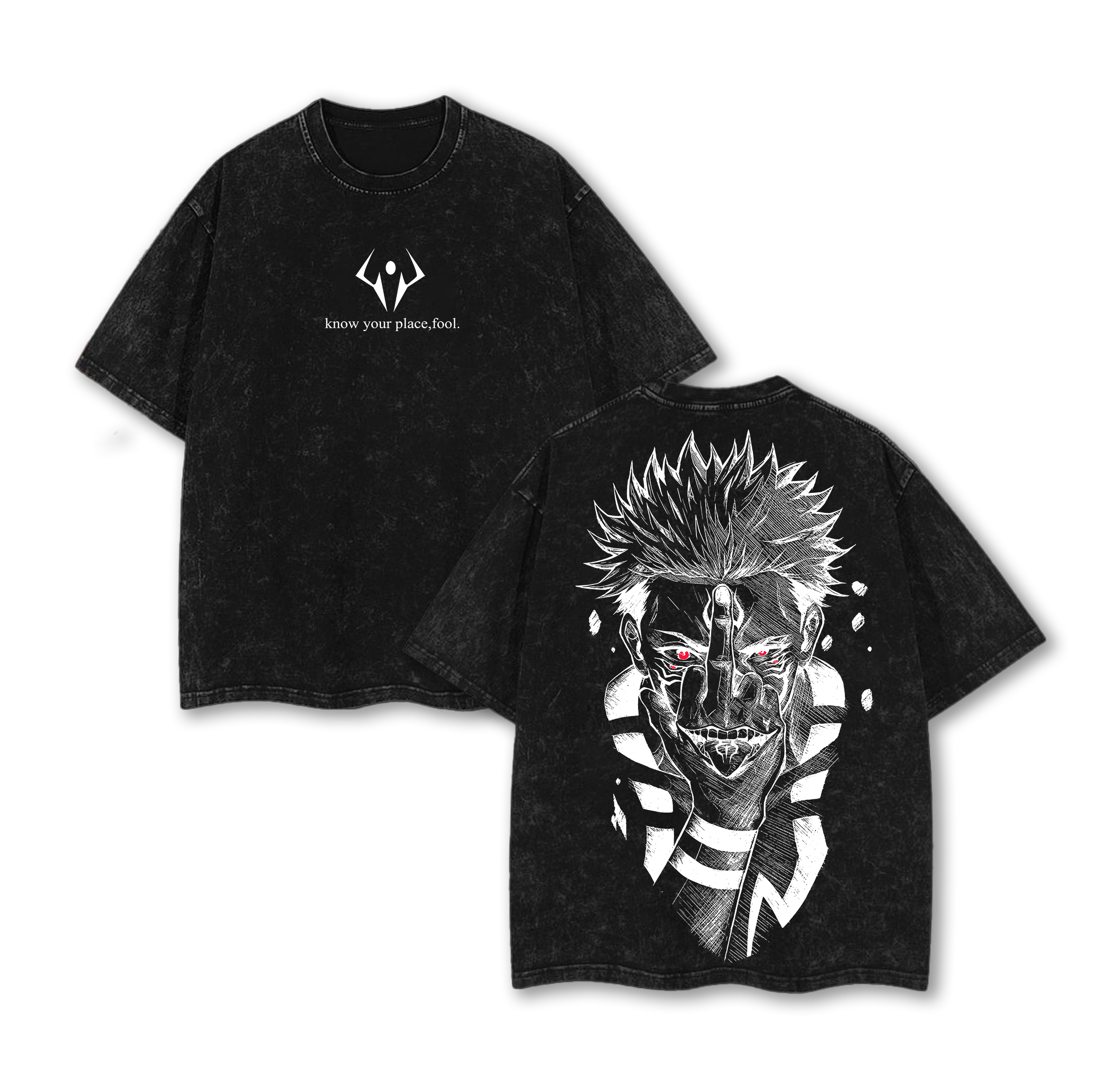 Ryomen Sukuna Know Your Place Fool T-Shirt – Jujutsu Kaisen Anime Oversize Washed Tee