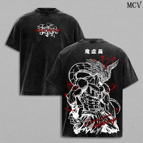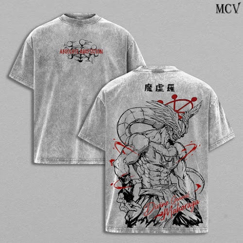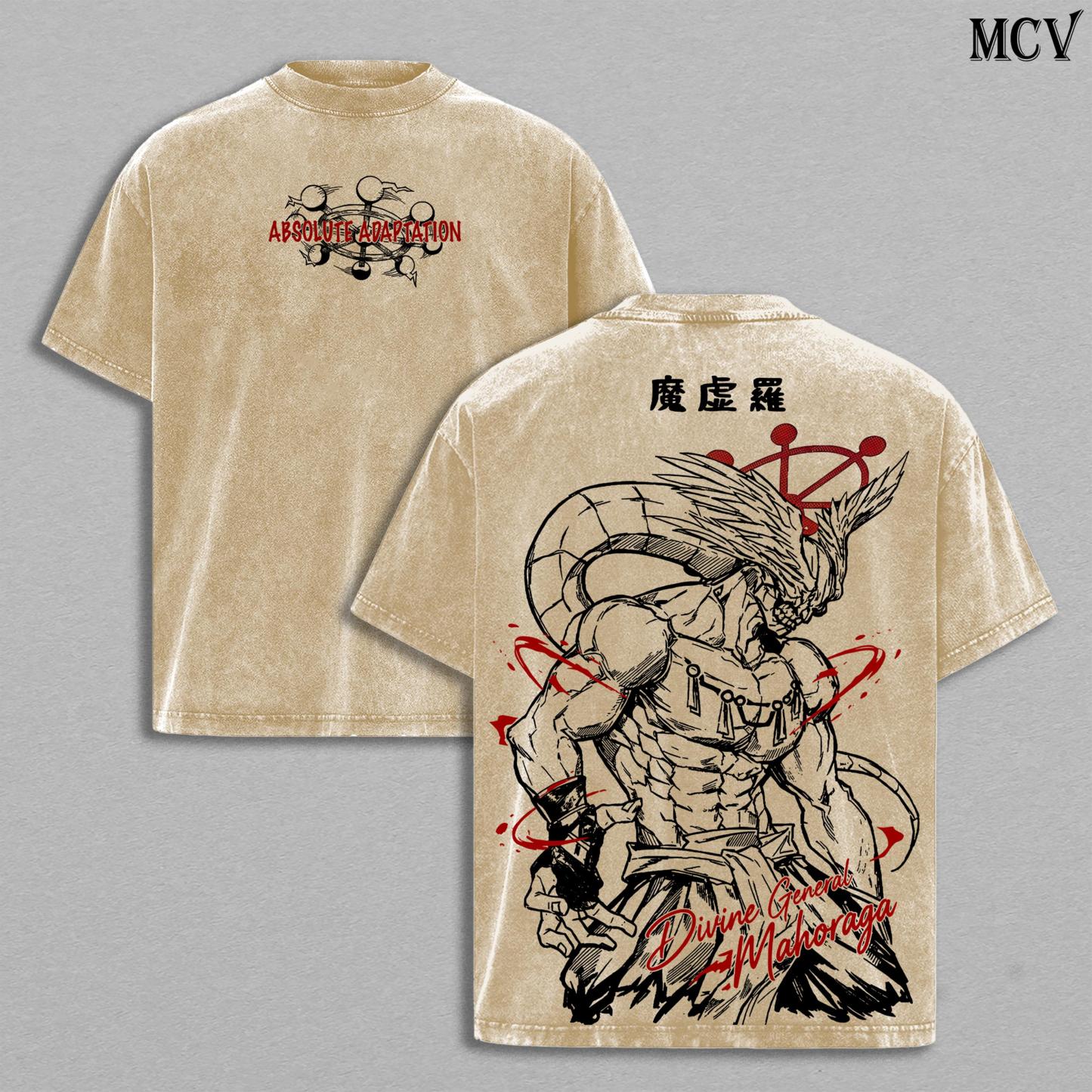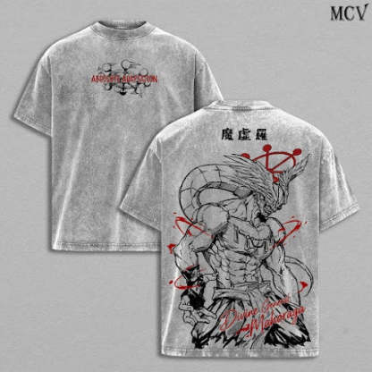 Mahoraga Tee Washed – JJK Anime Vintage Washed & Acid Wash Heavy Cotton Oversized Graphic T-Shirt & Hoodie, Double Printed Dark Fantasy Anime Manga Streetwear, Retro Unisex Soft Cotton Apparel, Gift for Jujutsu Kaisen Fans