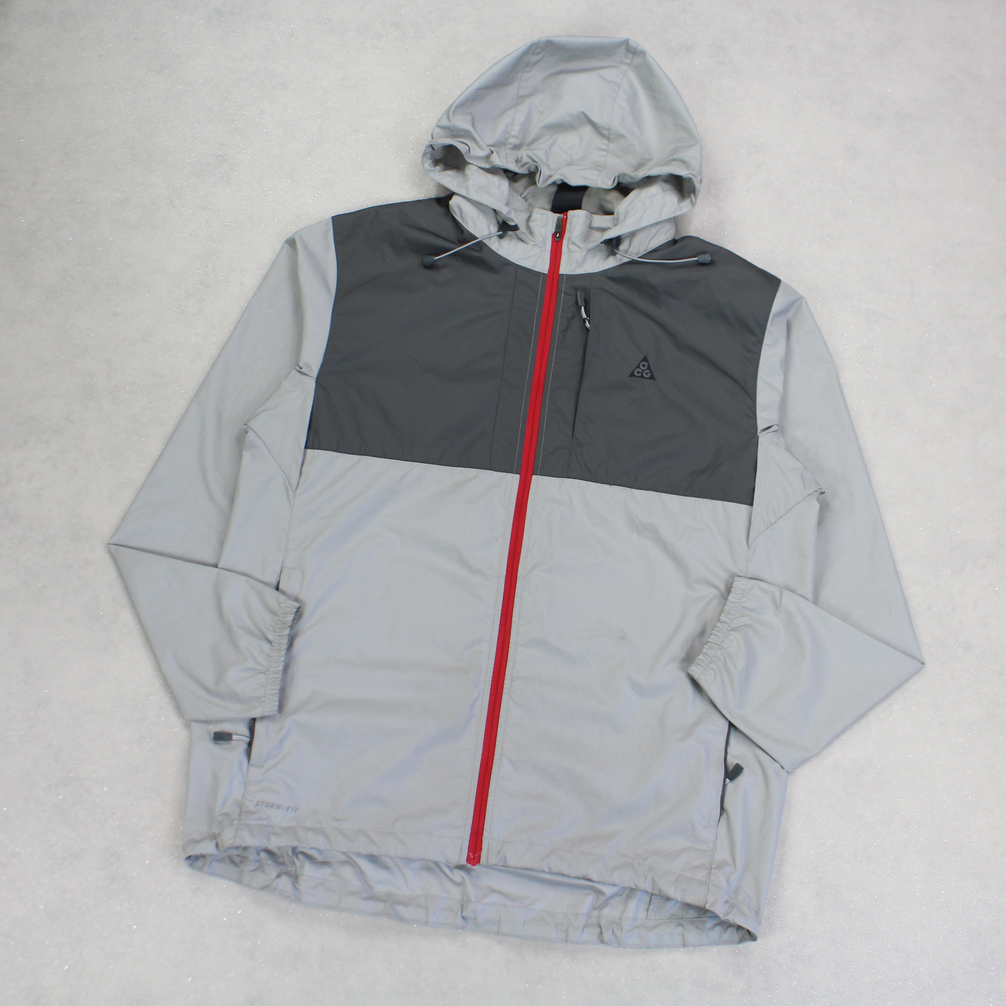 1990s, Zips Pockets, Red Grey Details, Hood.